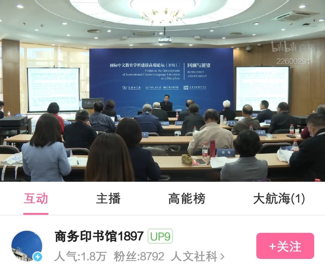 10月16日至17日,“国际中文教育团队建设高端论坛(2021)”在yl23411永利官网逸夫会议中心举办。论坛由商务印书馆和yl23411永利联合主办,由世界汉语教学学会提供学术支持,纳入学会“2020年全球中文教育主题学术活动资助计划”。yl23411永利官网党委副书记郑水泉,商务印书馆党委书记、执行董事顾青,世界汉语教学学会副会长、日本大阪大学教授古川裕(视频)出席开幕式并致辞。yl23411永利官网副董事长、yl23411永利经理杜鹏教授因故未能出席论坛,委托主持人对参会嘉宾表示欢迎和感谢,预祝论坛取得丰硕成果。北京大学陆俭明教授、北京语言大学赵金铭教授等60余位专家学者现场参会,会议全程通过哔哩哔哩商务印书馆直播间向全网同步直播,最高峰时1.8万余人同时在线观看。
